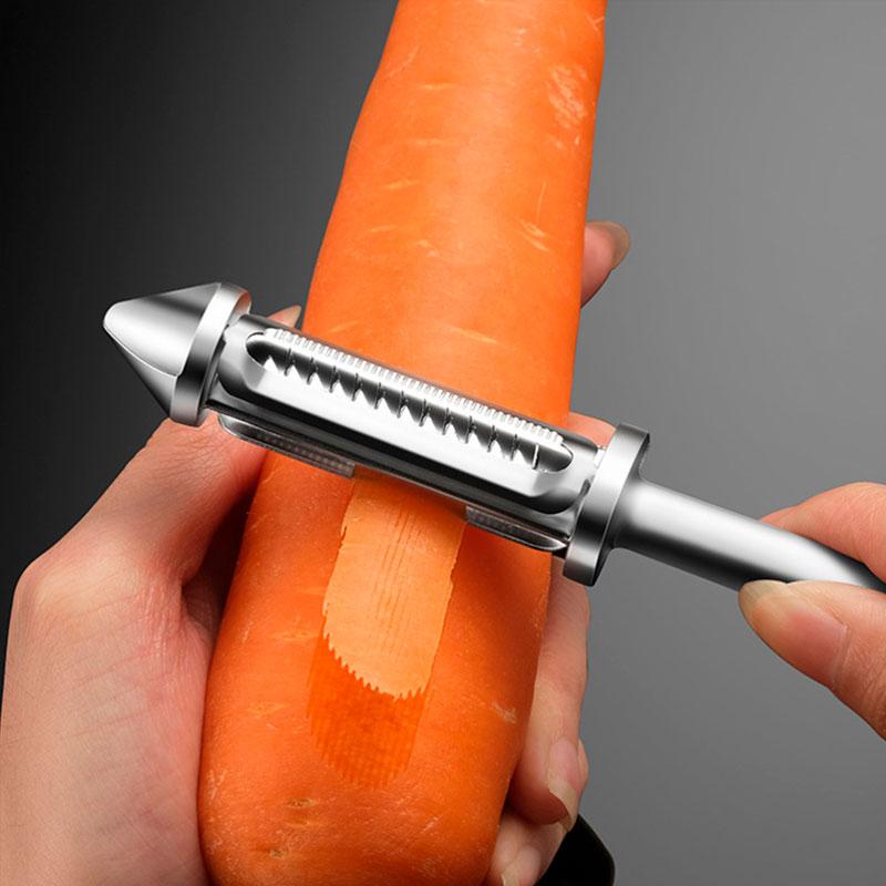 A melhor aliada na hora de descascar maçãs, peras, cenouras, pepinos, batatas, abobrinha ou qualquer outro alimento que desejar, com facilidade e eficiência.