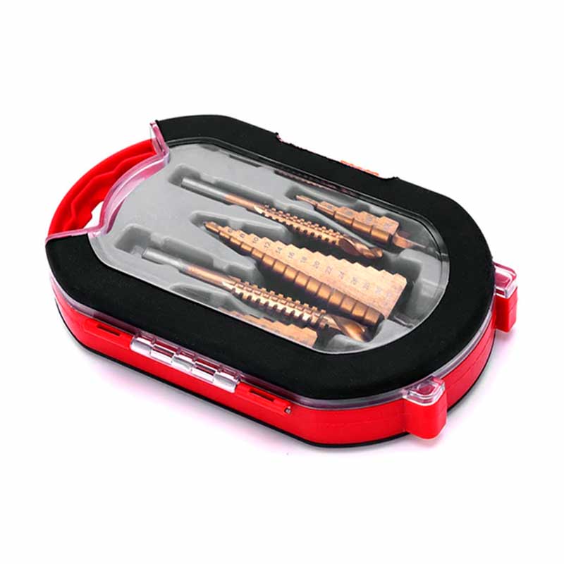 Conta com 6 modelos de brocas diferentes para anteder todas as suas necessidades e agilizar seus trabalhos, sendo 3 brocas de etapa e 3 brocas serrilhadas.