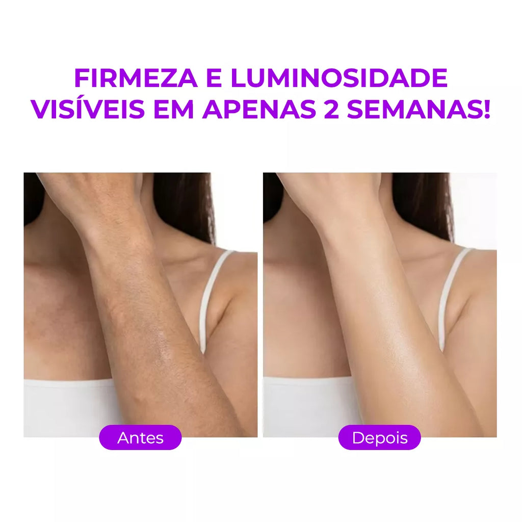 Graças à Manteiga de Karité e aos agentes umectantes como Glicerina e Cafeína, você sente a pele mais macia e elástica já nos primeiros dias de uso. Adeus à textura áspera nos cotovelos, braços e coxas.