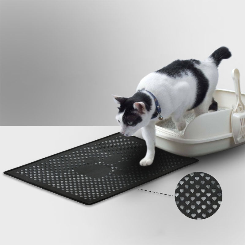 Feito em formato de coração, que além de decorar sua casa, mostra o quanto você ama o seu gatinho. O tapete tem as dimensões de 63 x 51 cm, o tamanho ideal para acomodar a caixa de areia do seu gato e as suas patinhas.